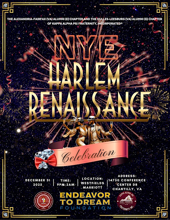 Welcome to the 2025 New Year’s Eve Harlem Renaissance event! Get ready to ring in the New Year in style at the Westfields Marriott Washington Dulles. Join us on December 31, 2025 at 3:00 PM Reception and 8:00 PM for a night filled with music, dance, and celebration.